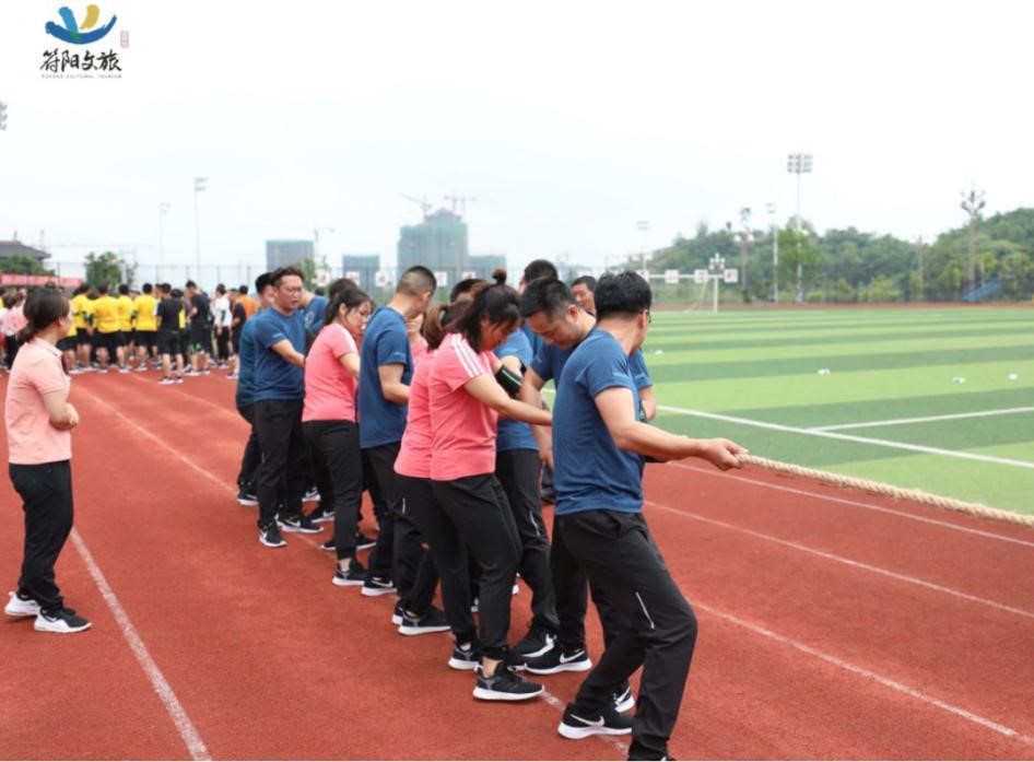 隨著哨聲一響,我們雙手握緊長(zhǎng)繩,咬緊牙關(guān)向后拉,為了把握節(jié)奏形成合力,心里默念著“一二、一二”,場(chǎng)上一時(shí)僵持難下,但難敵強(qiáng)悍對(duì)手,第一局廣源達(dá)勝。這仿佛符合多數(shù)人的預(yù)期,但我們?cè)鯐?huì)被拘于這固定印象,越戰(zhàn)越勇才是符陽(yáng)文旅人的風(fēng)姿。第二場(chǎng)對(duì)決比第一場(chǎng)更加艱難,一開(kāi)場(chǎng)廣源達(dá)占據(jù)絕對(duì)優(yōu)勢(shì),我們險(xiǎn)被拉到了終線(xiàn),全憑一口氣死撐,牙關(guān)咬緊,身體后傾,不斷降低重心,腳步穩(wěn)扎,做著別人眼里無(wú)畏的掙扎。一定不能越線(xiàn)!在超高壓下堅(jiān)持了十余秒,那一刻拼的就是韌勁!一群瘦弱的文旅人憑著一股拼勁慢慢把賽場(chǎng)主動(dòng)權(quán)掌握在了自己手中,每向后移動(dòng)一步,心里的勁更足了,如荒漠迷路的旅者遇見(jiàn)了綠洲,我們也尋得了力量之源。當(dāng)現(xiàn)場(chǎng)歡呼聲響起時(shí),我們已癱坐一片,不敢置信,我們贏啦!