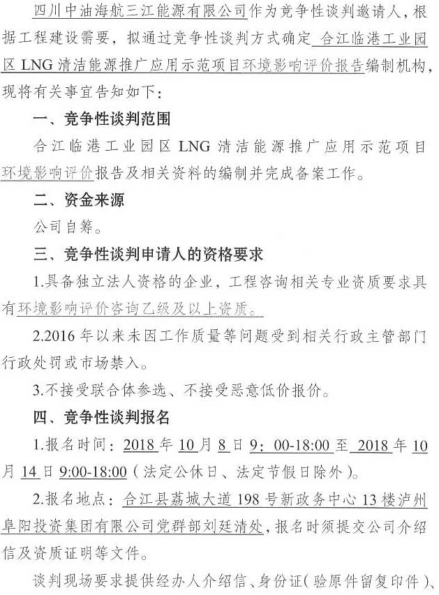 合江臨港工業(yè)園區(qū)LNG清潔能源推廣應(yīng)用示范項(xiàng)目環(huán)境影響評(píng)價(jià)單位競爭性談判公告.docx