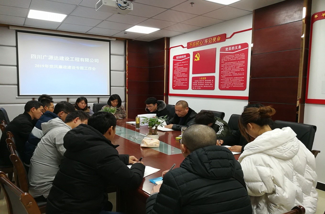 1月11日下午,四川廣源達建設工程有限公司組織召開了2019年第一季度安全生產工作暨黨風廉政建設工作會議。會上,董事長譙棣升領學了安全生產工作相關文件,全面總結了2018年安全生產工作目標完成情況,并對2019年公司的安全生產工作提出了要求。同時,董事長譙棣升還著重強調了廉潔從業(yè)相關事宜,要求抓黨風廉政建設要像抓企業(yè)安全生產一樣持之以恒,與企業(yè)經營發(fā)展同頻共振;把廉潔從業(yè)作為企業(yè)發(fā)展的出發(fā)點,堅持以廉潔凝聚人心,以廉潔樹立形象。