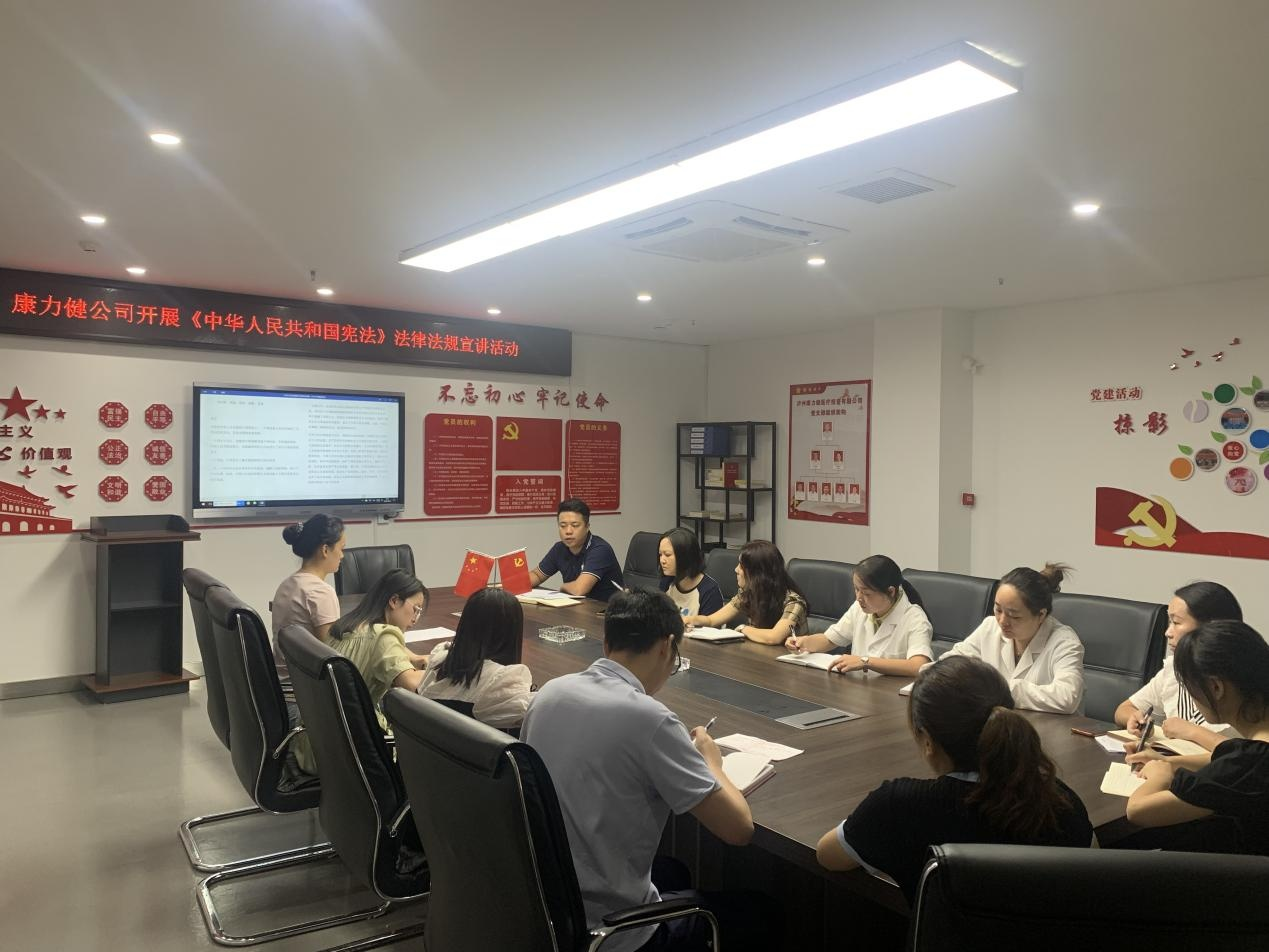 2022 年 8 月 23 日 , 康力健公司組織開展 《 中 華 人 民 共 和國憲法》 法律法規(guī)宣講活動, 由康力健綜合部部長賀佳領(lǐng)學(xué)。